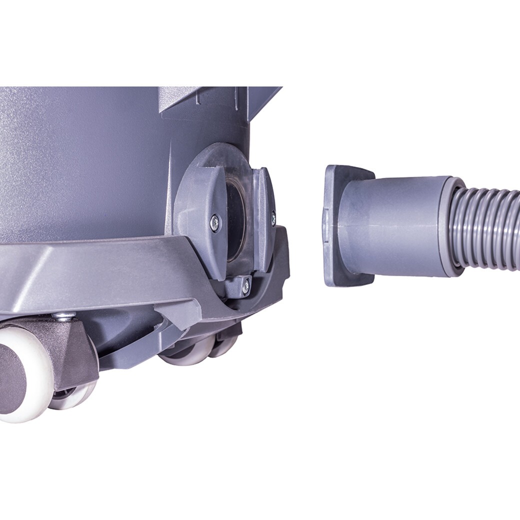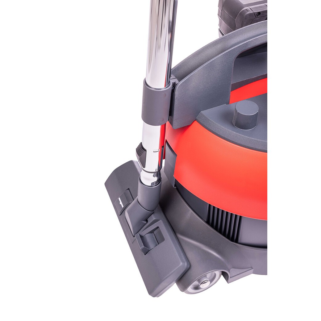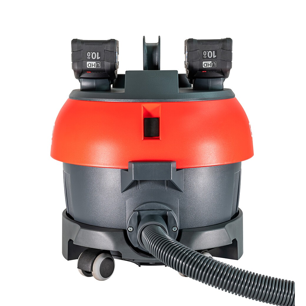 Its robust configuration with five castor wheels ensures high flexibility and smooth operations even in confined spaces. This vacuum cleaner also ensures low-noise operation. This system allows the battery to be used with equipment from other manufacturers as well.