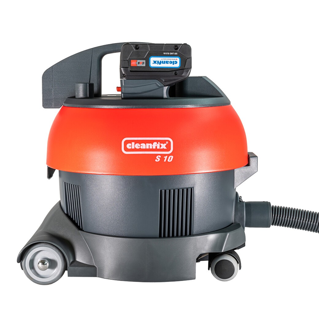 The Cleanfix S10 Plus SL CAS sled vacuum cleaner is characterized by high mobility and performance. It is a compact, agile and powerful dry vacuum cleaner that is specifically designed for cordless cleaning operations.