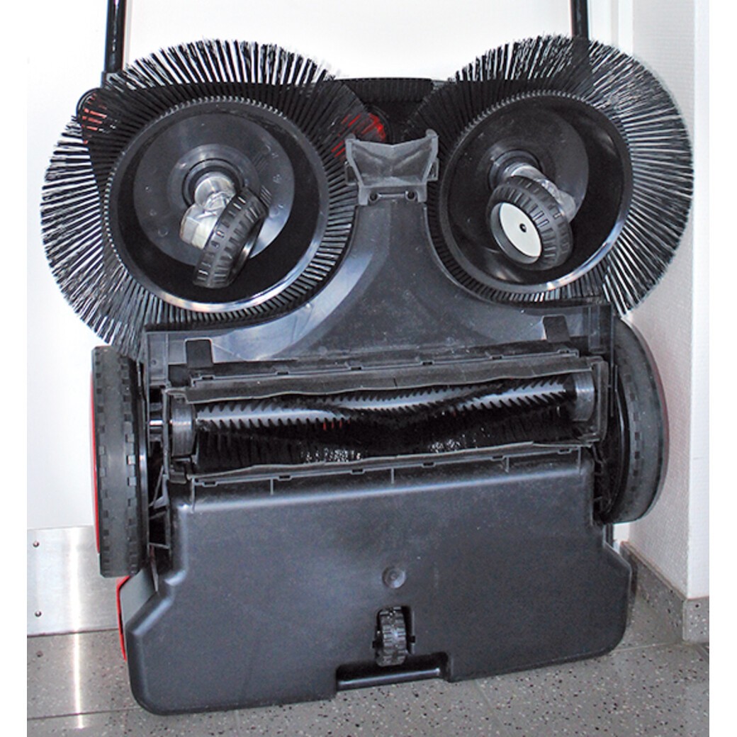 The CLEANFIX HS77O CAS sweeper features battery-powered side brushes that have a four-stage speed control. Both the side brushes and the roller brush can be adjusted individually. The sweeper can be adapted according to the various cleaning requirements. The white LED lighting mounted on the drive path ensures good visibility and safety in dim light conditions.